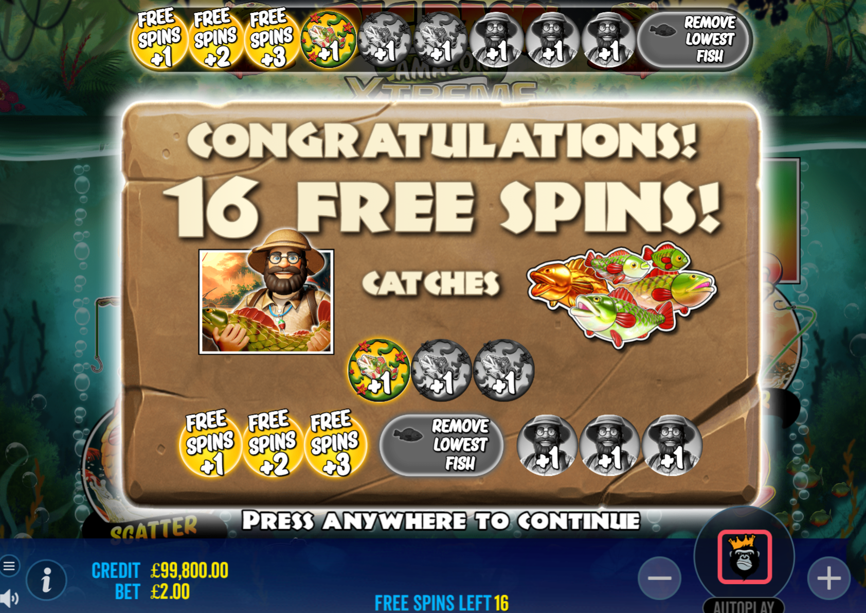 Big Bass Amazon Xtreme introduces the Ante feature, which gives players an extra opportunity to trigger the bonus game and subsequent free spins by increasing the chances of landing 3 scatters. By purchasing the Ante for 100 total bets, players can enhance their fishing adventure and potentially reel in substantial rewards.