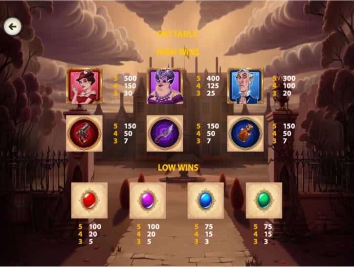 In the first spin, the game will reveal the murder weapon and it will add up to 12 Mystery symbols on the reels. These symbols will then transform into the same murder weapon and form a winning combination.