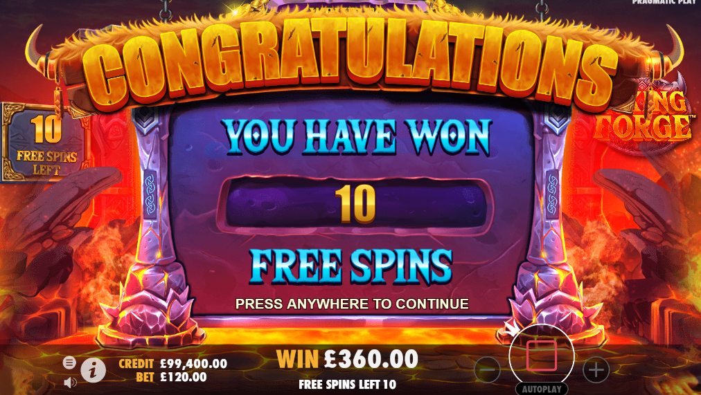 A. To activate the Free Spins bonus round in Viking Forge, land a minimum of four Scatter symbols during the base game. This triggers a minimum of ten free games, where you can enjoy additional payouts and a heightened sense of excitement. Keep an eye out for those Scatters to unlock this thrilling feature!